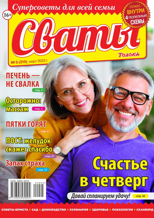 «Сват плохого не посоветует», — говорят в народе. В каждом номере журнала «Сваты» вы найдете: проверенные советы от читателей, экспертов, юристов, медиков, психологов, кулинарные рецепты, секреты здоровья, помощь в воспитании детей разного возраста, песни, байки, анекдоты. И все это в ярком, красочном оформлении.