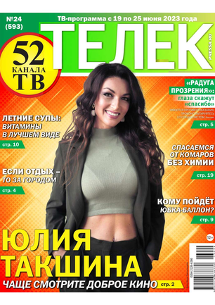 Еженедельник «ТЕЛЕК» является доброй семейной газетой, увлекательным рассказчиком и хорошо информированным советчиком. С ней всегда можно провести время интересно и с пользой.Подробный телегид позволяет читателям хорошо ориентироваться в мире телекино и телепрограмм.