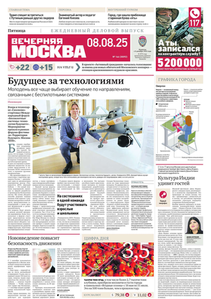 «Вечерняя Москва» — ежедневная российская вечерняя газета, старейшее из вечерних изданий в России, учрежденное в 1923 году. Выходит пять дней в неделю, кроме субботы и воскресенья. Отличается тем, что рассказывает о событиях еще не завершившегося дня. Оперативно освещает хронику и особенности жизни Москвы, охватывает все слои общества и большинство профессиональных и возрастных групп читателей.Издание представлено тремя выпусками – утренним ежедневным, вечерним (выходит три раза в неделю), еженедельным (выходит по четвергам).