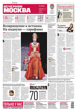 «Вечерняя Москва» — ежедневная российская вечерняя газета, старейшее из вечерних изданий в России, учрежденное в 1923 году. Выходит пять дней в неделю, кроме субботы и воскресенья. Отличается тем, что рассказывает о событиях еще не завершившегося дня. Оперативно освещает хронику и особенности жизни Москвы, охватывает все слои общества и большинство профессиональных и возрастных групп читателей.Издание представлено тремя выпусками – утренним ежедневным, вечерним (выходит три раза в неделю), еженедельным (выходит по четвергам).