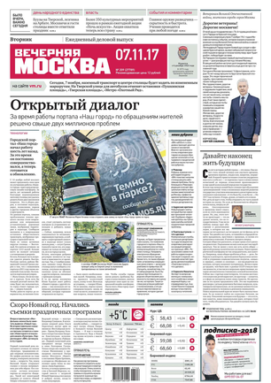 «Вечерняя Москва» — ежедневная российская вечерняя газета, старейшее из вечерних изданий в России, учрежденное в 1923 году. Выходит пять дней в неделю, кроме субботы и воскресенья. Отличается тем, что рассказывает о событиях еще не завершившегося дня. Оперативно освещает хронику и особенности жизни Москвы, охватывает все слои общества и большинство профессиональных и возрастных групп читателей.Издание представлено тремя выпусками – утренним ежедневным, вечерним (выходит три раза в неделю), еженедельным (выходит по четвергам).
