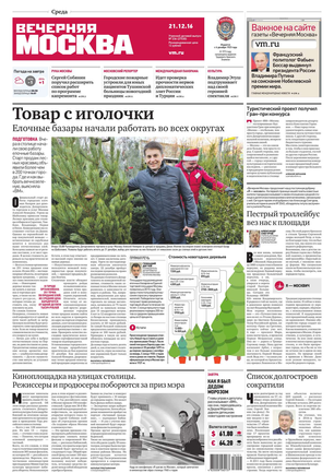«Вечерняя Москва» — ежедневная российская вечерняя газета, старейшее из вечерних изданий в России, учрежденное в 1923 году. Выходит пять дней в неделю, кроме субботы и воскресенья. Отличается тем, что рассказывает о событиях еще не завершившегося дня. Оперативно освещает хронику и особенности жизни Москвы, охватывает все слои общества и большинство профессиональных и возрастных групп читателей.Издание представлено тремя выпусками – утренним ежедневным, вечерним (выходит три раза в неделю), еженедельным (выходит по четвергам).