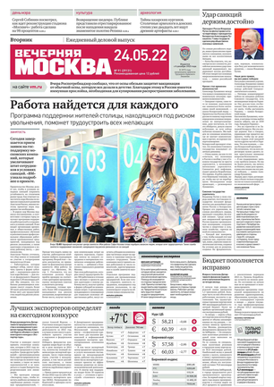 «Вечерняя Москва» — ежедневная российская вечерняя газета, старейшее из вечерних изданий в России, учрежденное в 1923 году. Выходит пять дней в неделю, кроме субботы и воскресенья. Отличается тем, что рассказывает о событиях еще не завершившегося дня. Оперативно освещает хронику и особенности жизни Москвы, охватывает все слои общества и большинство профессиональных и возрастных групп читателей.Издание представлено тремя выпусками – утренним ежедневным, вечерним (выходит три раза в неделю), еженедельным (выходит по четвергам).