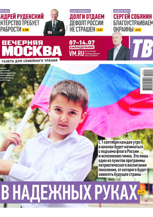 Еженедельный выпуск «Вечерней Москвы» — это значимые события недели, афиша города, новости из сферы отдыха и развлечений, телепрограмма с анонсами и комментариями, авторские колонки журналистов и авторитетные мнения экспертов, детская страничка, специальная рубрика «Золушка», интересные репортажи о необычных судьбах московских жителей, постоянные конкурсы и викторины.