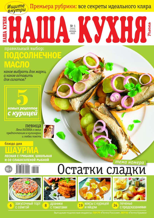 Основа каждого номера — проверенные рецепты блюд с фотографиями. С помощью «Нашей кухни» можно запросто составить меню на каждый день и для праздничного стола. С журналом «Наша кухня» процесс приготовления блюд превратится в удовольствие!