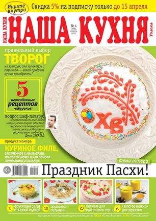 Основа каждого номера — проверенные рецепты блюд с фотографиями. С помощью «Нашей кухни» можно запросто составить меню на каждый день и для праздничного стола. С журналом «Наша кухня» процесс приготовления блюд превратится в удовольствие!