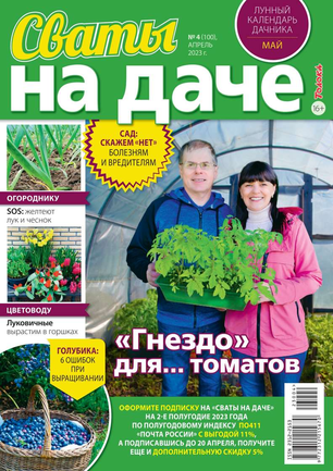 В журнале «Сваты на даче» вы узнаете, как проще, быстрее и без неимоверных усилий добиться высоких урожаев и обустроить дачный быт. В одном журнале 300 подсказок: самые действенные и доступные методы посева и посадки садово-огородных культур, ухода за ними, борьбы с вредителями и болезнями.