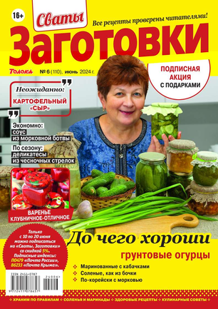 Более 100 рецептов заготовок от Сватов в каждом номере: соленья и маринады, салаты и ассорти, соусы и приправы, заготовки к сезону, сладкие заготовки, напитки, винный погребок, мясные деликатесы, здоровые рецепты, целебные заготовки, дачные хлопоты, правила хранения, а также кроссворды и сканворды для досуга. Лучшими рецептами поделятся с вами сваты Любовь Сергеевна и Михаил Михайлович.