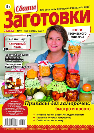 Более 100 рецептов заготовок от Сватов в каждом номере: соленья и маринады, салаты и ассорти, соусы и приправы, заготовки к сезону, сладкие заготовки, напитки, винный погребок, мясные деликатесы, здоровые рецепты, целебные заготовки, дачные хлопоты, правила хранения, а также кроссворды и сканворды для досуга. Лучшими рецептами поделятся с вами сваты Любовь Сергеевна и Михаил Михайлович.