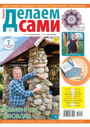 «Делаем сами» — журнал для мастеров и мастериц, находящихся в постоянном поиске свежих творческих идей и решений. Уникальность издания в том, что оно состоит главным образом из писем читателей. Авторы делятся своим опытом и доступными идеями, дают полезные практические советы о том, что можно спаять и вырезать, выпилить и выстругать, собрать и склеить, выкроить и сострочить, вышить, связать и сплести своими руками, чтобы сделать свой дом, дачу, участок красивее и уютнее, а жизнь — комфортнее и интереснее!