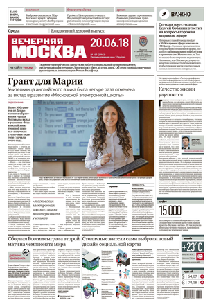 «Вечерняя Москва» — ежедневная российская вечерняя газета, старейшее из вечерних изданий в России, учрежденное в 1923 году. Выходит пять дней в неделю, кроме субботы и воскресенья. Отличается тем, что рассказывает о событиях еще не завершившегося дня. Оперативно освещает хронику и особенности жизни Москвы, охватывает все слои общества и большинство профессиональных и возрастных групп читателей.Издание представлено тремя выпусками – утренним ежедневным, вечерним (выходит три раза в неделю), еженедельным (выходит по четвергам).
