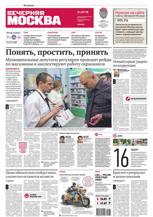 «Вечерняя Москва» — ежедневная российская вечерняя газета, старейшее из вечерних изданий в России, учрежденное в 1923 году. Выходит пять дней в неделю, кроме субботы и воскресенья. Отличается тем, что рассказывает о событиях еще не завершившегося дня. Оперативно освещает хронику и особенности жизни Москвы, охватывает все слои общества и большинство профессиональных и возрастных групп читателей.Издание представлено тремя выпусками – утренним ежедневным, вечерним (выходит три раза в неделю), еженедельным (выходит по четвергам).