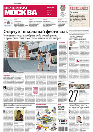 «Вечерняя Москва» — ежедневная российская вечерняя газета, старейшее из вечерних изданий в России, учрежденное в 1923 году. Выходит пять дней в неделю, кроме субботы и воскресенья. Отличается тем, что рассказывает о событиях еще не завершившегося дня. Оперативно освещает хронику и особенности жизни Москвы, охватывает все слои общества и большинство профессиональных и возрастных групп читателей.Издание представлено тремя выпусками – утренним ежедневным, вечерним (выходит три раза в неделю), еженедельным (выходит по четвергам).