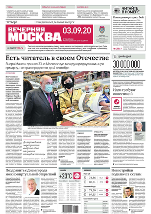 «Вечерняя Москва» — ежедневная российская вечерняя газета, старейшее из вечерних изданий в России, учрежденное в 1923 году. Выходит пять дней в неделю, кроме субботы и воскресенья. Отличается тем, что рассказывает о событиях еще не завершившегося дня. Оперативно освещает хронику и особенности жизни Москвы, охватывает все слои общества и большинство профессиональных и возрастных групп читателей.Издание представлено тремя выпусками – утренним ежедневным, вечерним (выходит три раза в неделю), еженедельным (выходит по четвергам).