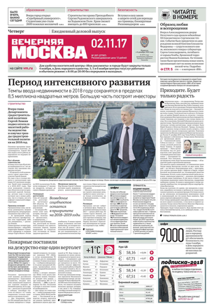 «Вечерняя Москва» — ежедневная российская вечерняя газета, старейшее из вечерних изданий в России, учрежденное в 1923 году. Выходит пять дней в неделю, кроме субботы и воскресенья. Отличается тем, что рассказывает о событиях еще не завершившегося дня. Оперативно освещает хронику и особенности жизни Москвы, охватывает все слои общества и большинство профессиональных и возрастных групп читателей.Издание представлено тремя выпусками – утренним ежедневным, вечерним (выходит три раза в неделю), еженедельным (выходит по четвергам).