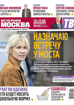 Еженедельный выпуск «Вечерней Москвы» — это значимые события недели, афиша города, новости из сферы отдыха и развлечений, телепрограмма с анонсами и комментариями, авторские колонки журналистов и авторитетные мнения экспертов, детская страничка, специальная рубрика «Золушка», интересные репортажи о необычных судьбах московских жителей, постоянные конкурсы и викторины.
