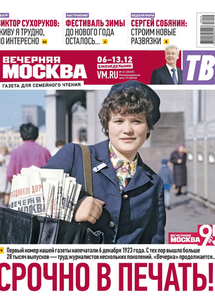 «Вечерняя Москва» — ежедневная российская вечерняя газета, старейшее из вечерних изданий в России, учрежденное в 1923 году. Выходит пять дней в неделю, кроме субботы и воскресенья. Отличается тем, что рассказывает о событиях еще не завершившегося дня. Оперативно освещает хронику и особенности жизни Москвы, охватывает все слои общества и большинство профессиональных и возрастных групп читателей.Издание представлено тремя выпусками – утренним ежедневным, вечерним (выходит три раза в неделю), еженедельным (выходит по четвергам).