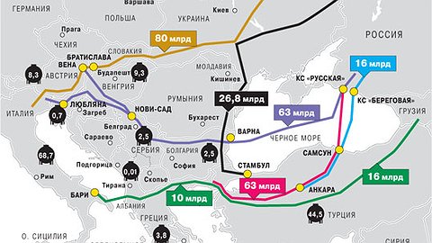 "Газпром" после отказа от South Stream в пользу нового газопровода в Турцию такой же мощностью 63 млрд куб. м не откажется от идеи прекратить транзит газа в Европу через Украину к 2020 году, когда истечет действующий контракт. По словам источников "Ъ" в отрасли, новая труба может быть проложена по кратчайшему маршруту через Черное море — примерно параллельно газопроводу Blue Stream, а затем пойдет в западную Турцию до границы с Грецией, где создадут пункт сдачи газа. Одновременно "Газпром" собирается вести переговоры с европейскими компаниями, которые получают газ через Украину, чтобы заменить закрепленные в их долгосрочных контрактах пункты сдачи (сейчас для большей части объемов это австрийский Баумгартен) на новый турецкий хаб. Но газопроводы для поставки этого газа на свои рынки европейцы должны будут строить сами.