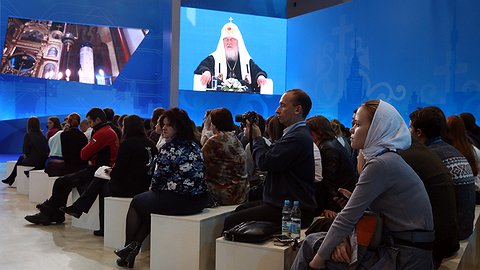 II Международный православный студенческий форум на ВДНХ в Москве вызвал ажиотаж. Заявленный как духовный, он усилиями студентов МГУ представил два симулятора виртуальной реальности, студентов РГСУ - образовательную систему, которая моделирует варианты развития цивилизации. Студенты-архитекторы показали проекты реставрации древних храмов, технические вузы - роботов-коптеров, аватаров и трактор-беспилотник, заменяющий крестьянина. На площадках форума побывали 14,3 тысячи человек. А главная встреча - лекция и сессия вопросов и ответов с Патриархом Кириллом и студентами - вместила лишь треть желающих. Потому "РГ" реконструирует диалоги Патриарха и студентов.